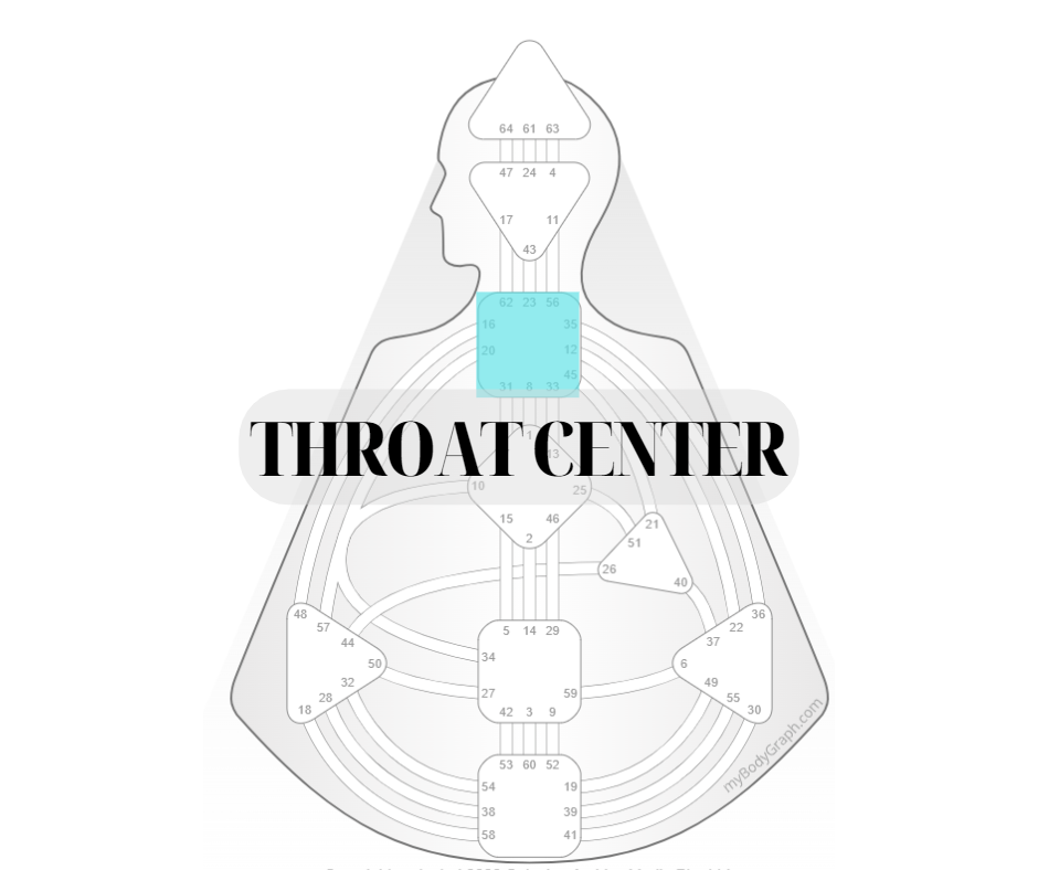 As always, we would love for you to share any thoughts, insights, ideas, or aha’s as you contemplate the Throat Center and how that shows up for you in your design and in your life.